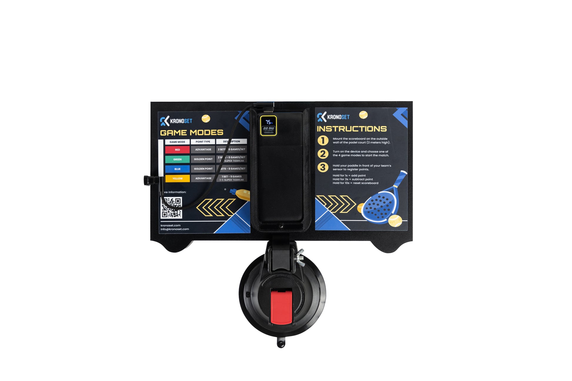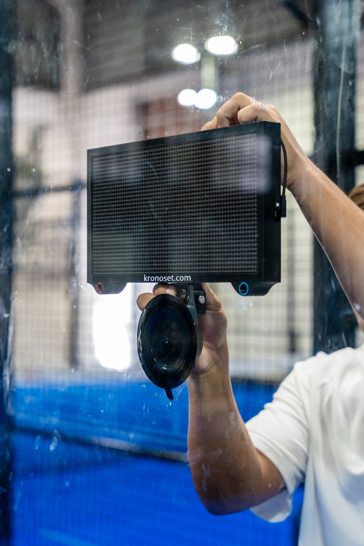 Kronoset, the first contactless digital scoreboard: control the score directly on the court, without any external controls or devices. Just hold your racket, add the point, and focus on playing.